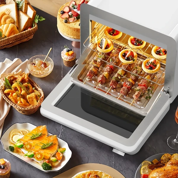 Our air fryer toaster oven stands out for its versatility, efficiency, and health benefits. The lack of oil in cooking means you can enjoy your favorite dishes with fewer calories and less guilt. It’s perfect for any occasion, whether you’re whipping up a quick meal on a busy weekday or hosting a dinner party. The digital timer control and large capacity make it suitable for all types of cooking adventures. What’s more, its energy-efficient design ensures that you can cook to your heart’s content without worrying about your energy bills.