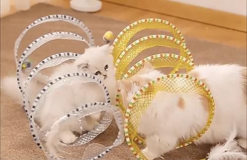 These tunnels have been a hit with our cat since they arrived. He's been thoroughly enjoying crawling through them and playing with the attached toys. The fabric covering the coil and the securely attached toys are appreciated features, although only time will tell how well they hold up to our cat's rough play.