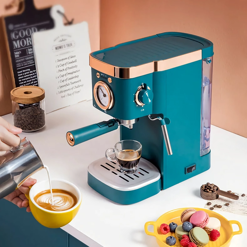 What sets our espresso maker apart is its steam milk frother. This feature enables you to create a variety of coffee beverages, from lattes to cappuccinos, with that creamy, frothy top layer that coffee lovers crave. The semi-automatic design combines the precision of manual brewing with the convenience of an automated process, making it a special addition to any kitchen.