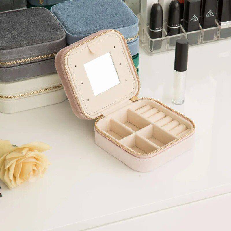 I can fit a lot of jewelry in my small box! The zip-up style is perfect for traveling, and the velvet box is both pretty and comfortable to handle.