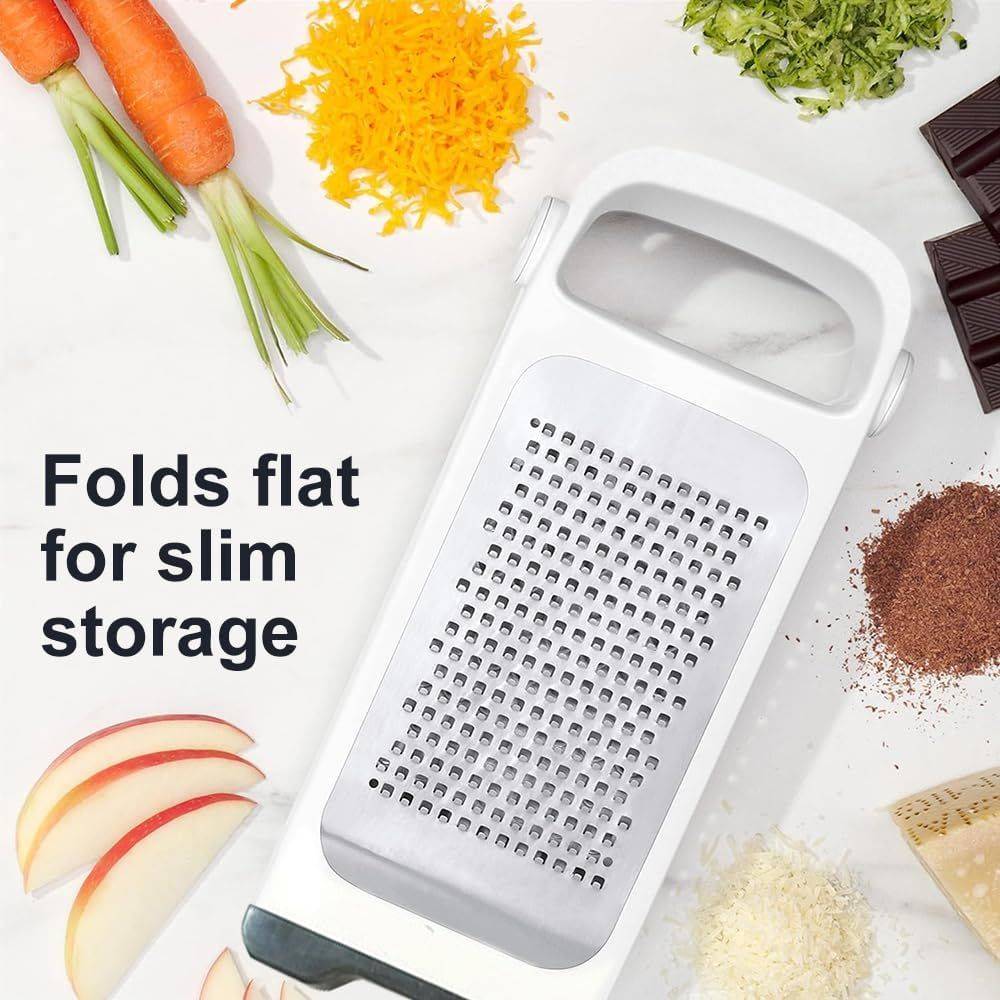 I'm delighted with this foldable grater's performance. Its dual functionality for both cheese and ginger is a huge plus in my kitchen. The ease of cleaning and the compact design for storage are commendable features. Its sharp blades handle all grating tasks efficiently. A solid investment for any home cook