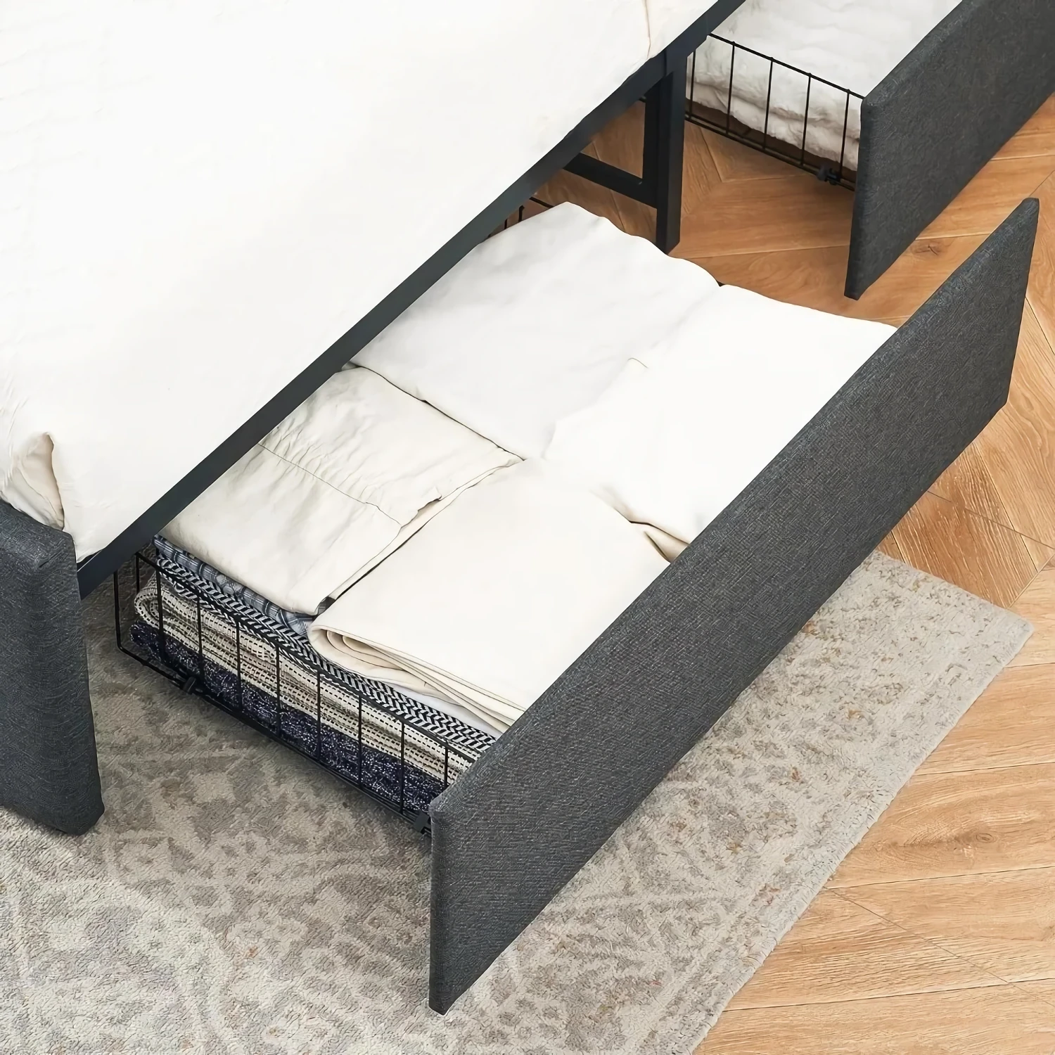I can't express enough how much I adore this bed frame! The linen fabric gives it a sophisticated look, and the adjustable headboard means I can tailor it to suit my mattress perfectly. The storage drawers on smooth wheels make accessing my belongings a dream. It's sturdy, stylish, and the assembly process was straightforward. A perfect addition to any bedroom looking for a blend of style and functionality.