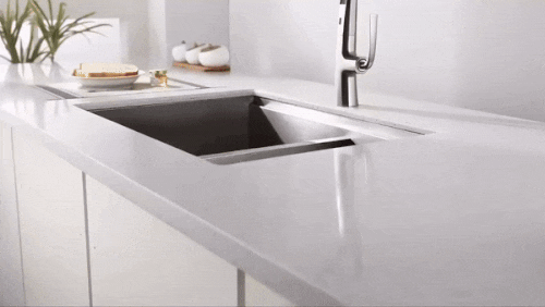 I am head over heels for the elegant touch that the gun gray hue adds to our sink area. And don’t even get me started on how useful that digital display is!