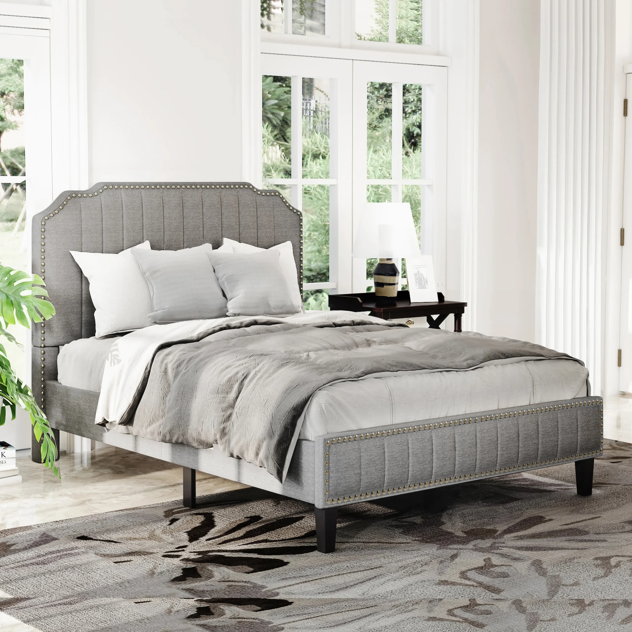 After months of searching, I finally found the perfect bed. The full size fits wonderfully in my space, and the sleek design has given my bedroom a modern upgrade. The bed is incredibly sturdy, thanks to the solid pine wood frame, and the linen upholstery adds a layer of sophistication. The nailhead trim is a beautiful detail that ties everything together. Assembling it was straightforward, and I've been enjoying restful sleep ever since.