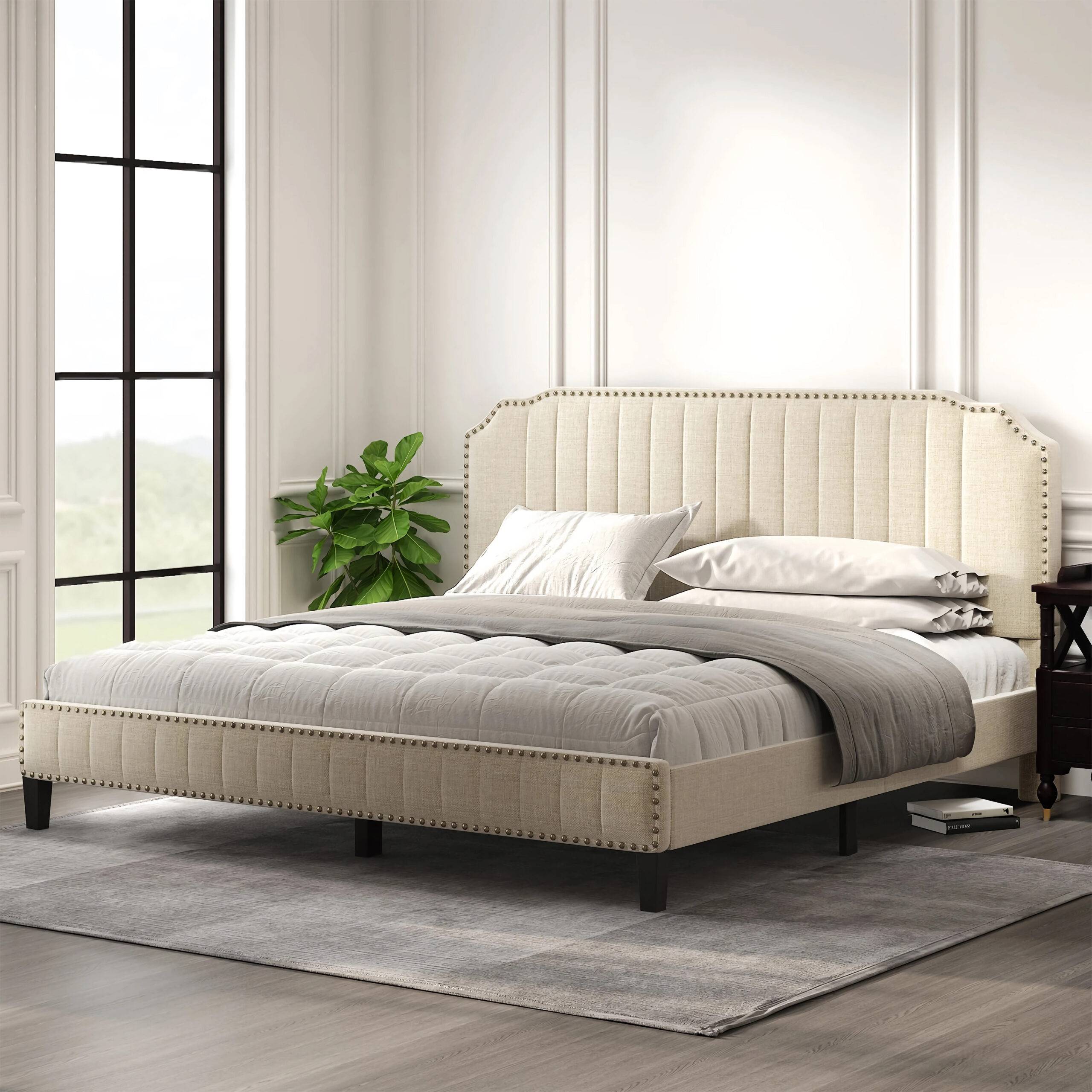 This bed is the perfect blend of elegance and comfort. The linen upholstery and nailhead trim add a luxurious feel, while the sturdy design ensures a good night's sleep. It's a beautiful focal point in my bedroom. Very happy with my purchase!