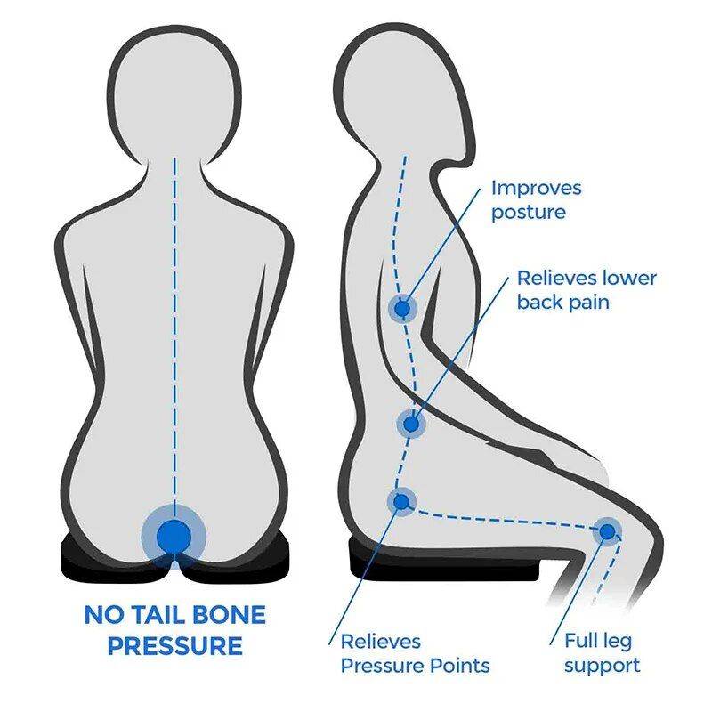 Our seat cushion stands out for its exceptional quality and ergonomic design. The memory foam adapts to your body shape, providing personalized support and relief. Its U-shaped cut-out reduces pressure on the coccyx, making it a lifesaver for those with tailbone pain. Plus, it’s not just for pain relief; it’s a proactive measure to prevent discomfort during long sitting periods.