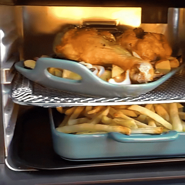 Roasted sweet potatoes and chicken wings came out perfectly. It's large, user-friendly, and doesn't smoke up the kitchen. Cleaning's a breeze too. It's been great for whipping up quick snacks for the kids.